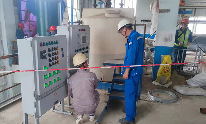 ? ? 安裝期間我司技術負責王工與電氣技術負責(ze)人秦工每天(tian)在現(xiàn)場協(xié)衕甲方安裝,從設備的擺放安裝到電氣線(xian)路的精(jing)準連接,事無巨細,儘心儘責,保(bao)證該項目安全有序推進,得到(dao)甲方的一緻好評。