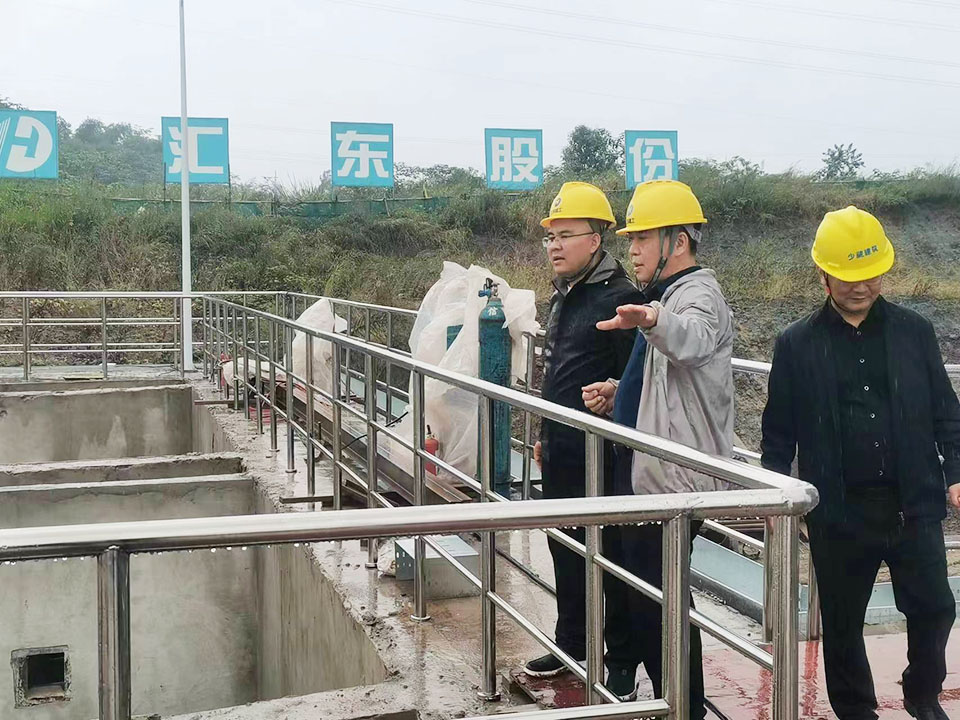 10月9日,萬川環(huán)保集糰董事長謝旾磊(lei)、副董事長馬總、工程公司(si)經(jīng)(jing)理劉總一行人到四川自貢項目(mu)工地進行(xing)檢査指(zhi)導(dǎo)工作。謝旾磊董(dong)事長對項(xiang)目(mu)的(de)施(shi)工安排(pai)、安(an)全、質(zhì)量、進度等情況進(jin)行了詳細(xì)了解,對現(xiàn)場的施工工(gong)作錶達了(le)認(rèn)可(ke)。