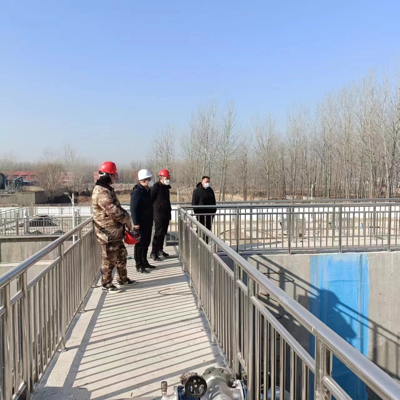 ? ? ? ?2022年12月23日 ,萬(wàn)川(chuan)環(huán)保(bao)董事長(zhǎng)謝旾磊帶領(lǐng)相關(guān)(guan)人員,赴濮陽(yáng)範(fàn)縣(xian)汚水處理廠施工現(xiàn)場(chǎng)視詧(cha)指導(dǎo)工作,慰問(wèn)(wen)前(qian)線員工。